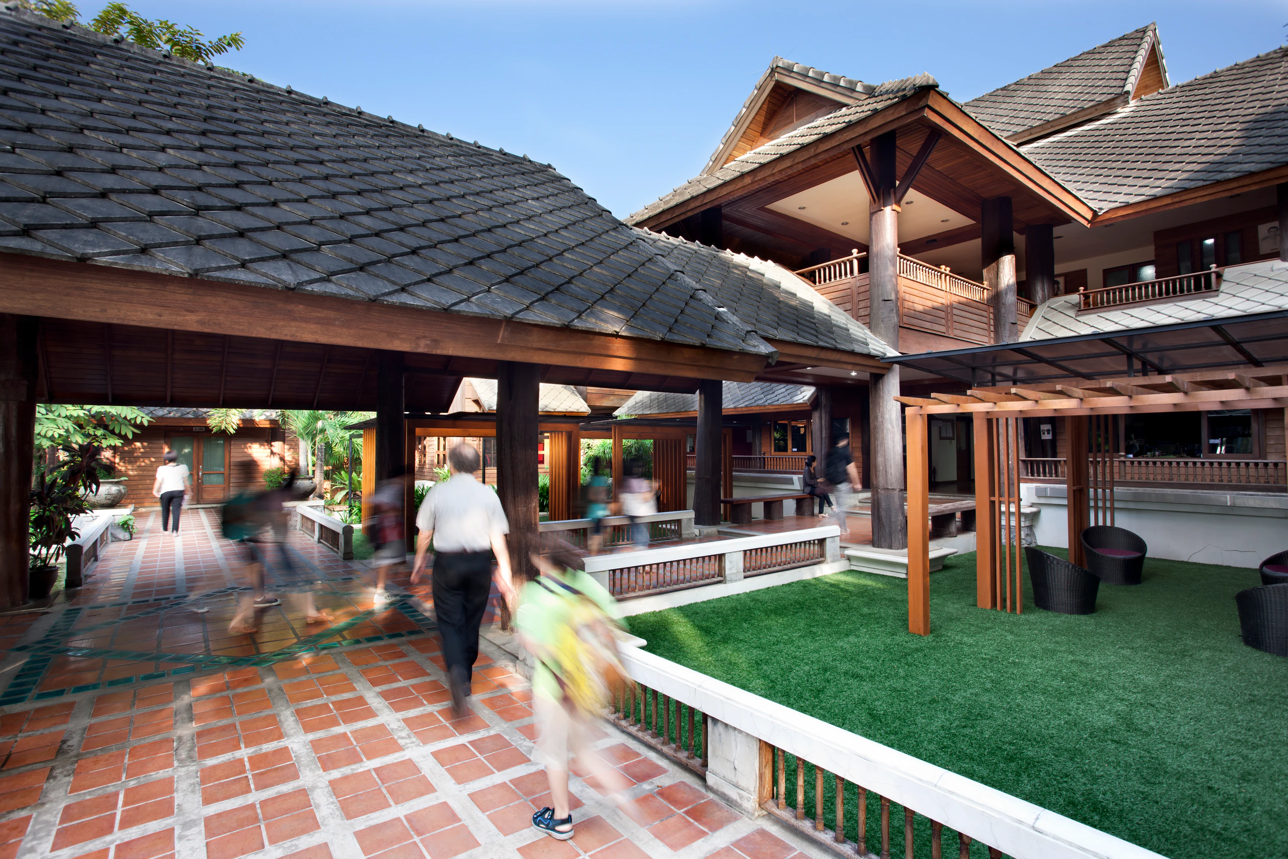 Beautiful green spaces, modern buildings, and advanced air quality systems create an optimal learning atmosphere